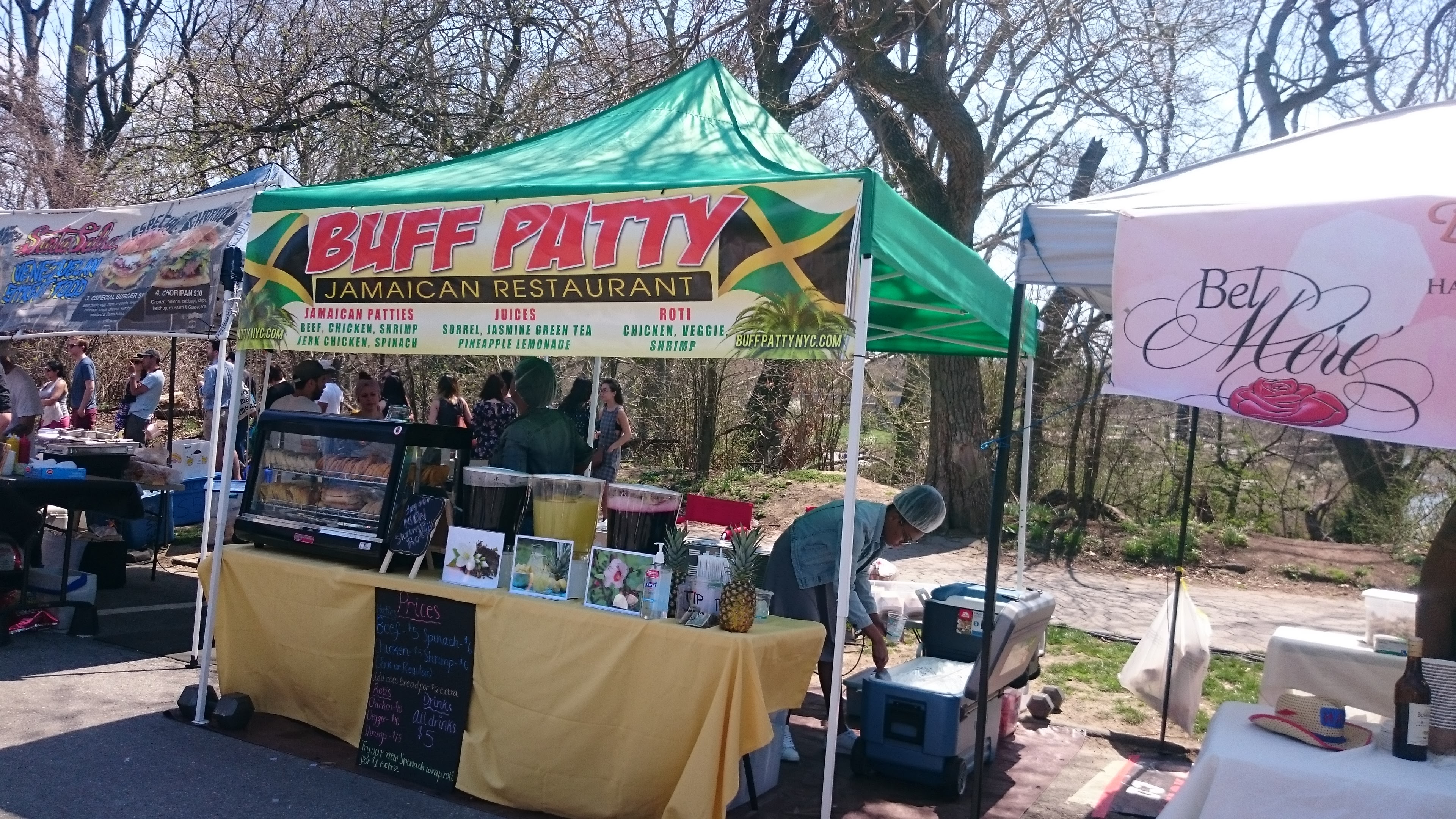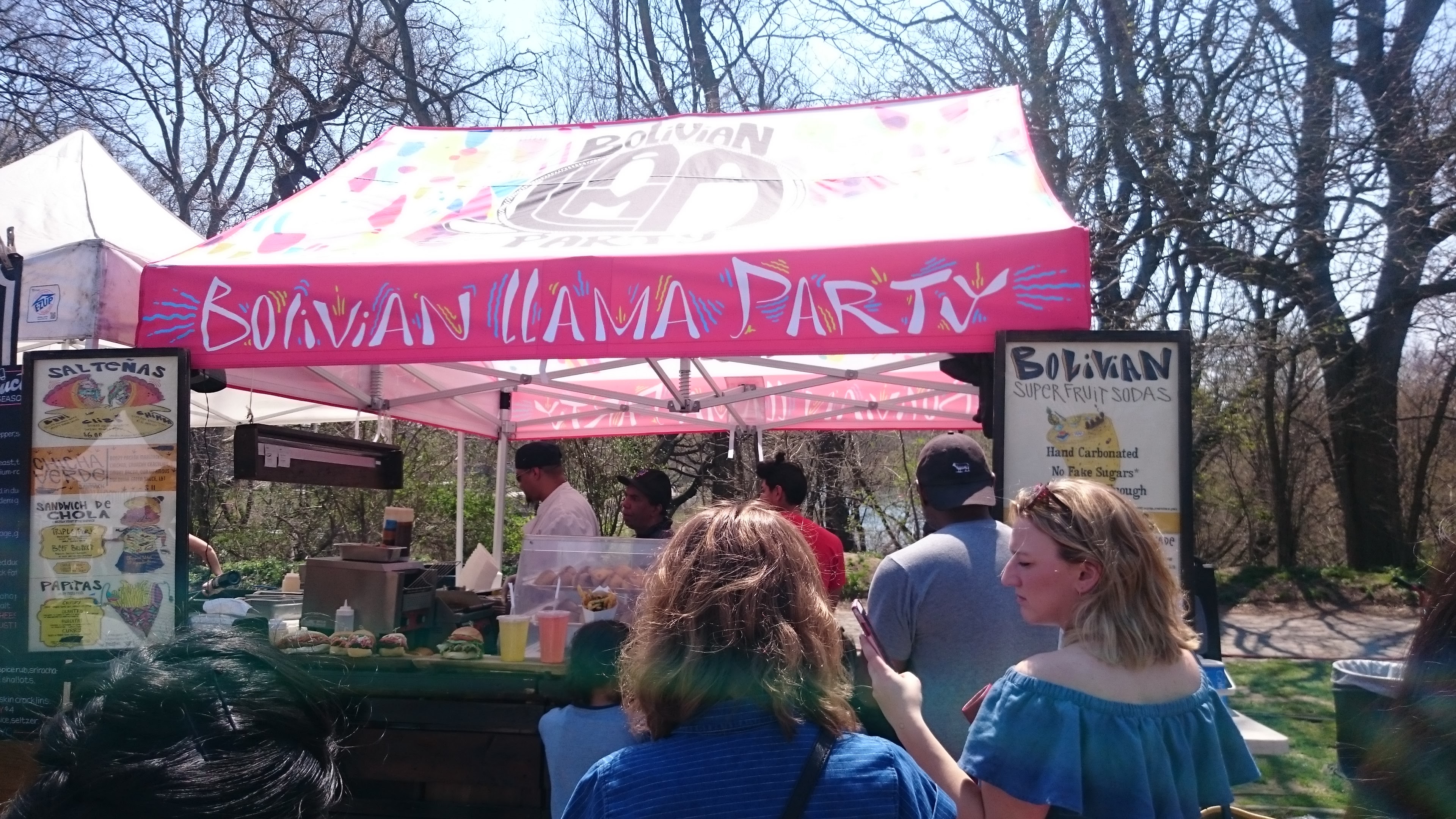 Disposés en ovale, les stands proposent de la streetfood de nombreuses spécialités et nationalités ; après beaucoup d’hésitations, nous nous décidons pour le stand bolivien. Excellent choix !